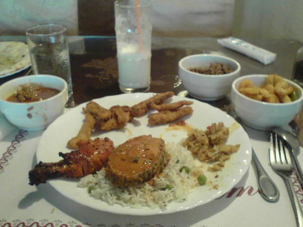 飯好像叫蔬菜什麼的,米是長型的,不像台灣的米軟而黏,而是顆粒分明,略硬